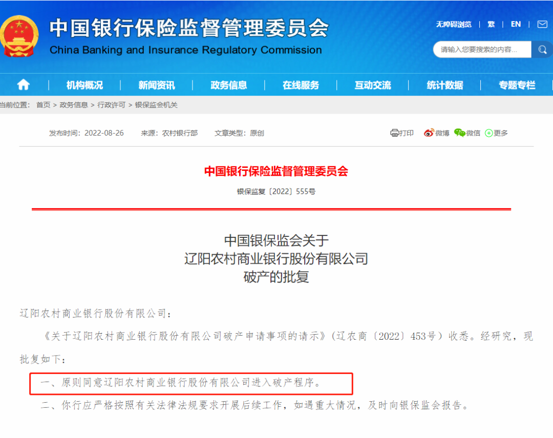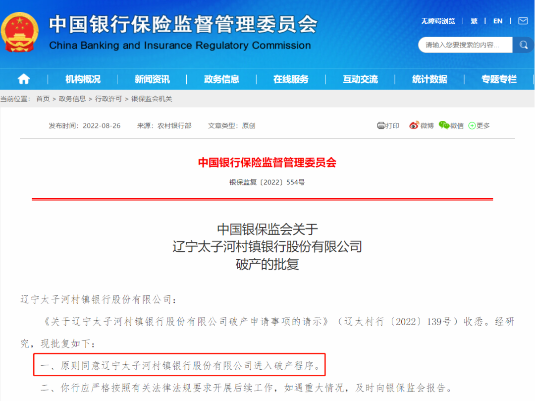 近日,银保监会公告称,同意两家银行进入破产程序!!!