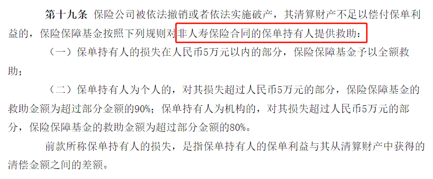 除了这条针对寿险保险公司的“金钟罩”之外,还有保险保障基金的守护。