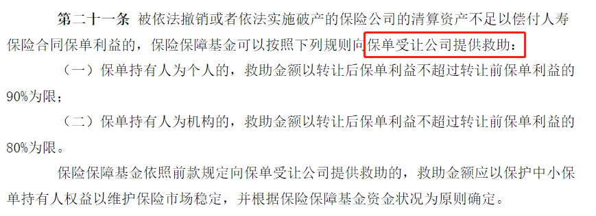 对于人寿保险合同呢,是向保单的受让公司进行救助。