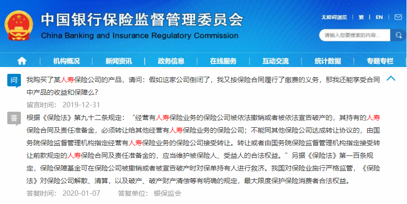 不论是保险保障基金管理办法还是银保监会的官方回复都明确表态会“保护消费者合法权益”。