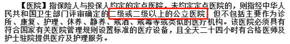 被保险人意外医疗就诊医院仅限国家卫生部门评审确定的二级或二级以上的公立医院。