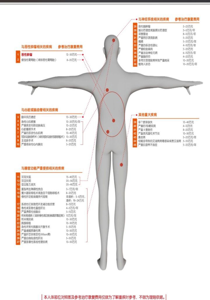 癌症的发生率明显比后两种重疾高得多,而且从治疗费用来说,癌症一般的治疗费用也会相对高昂,恶性肿瘤12-50万元/年,急性心肌埂塞10-20万/年,脑中风后遗症10-30万/年。加上你很少听到急性心梗或者脑中风复发的吧,但癌症1年内复发率高达85%,3年内出现复发的概率为55%。