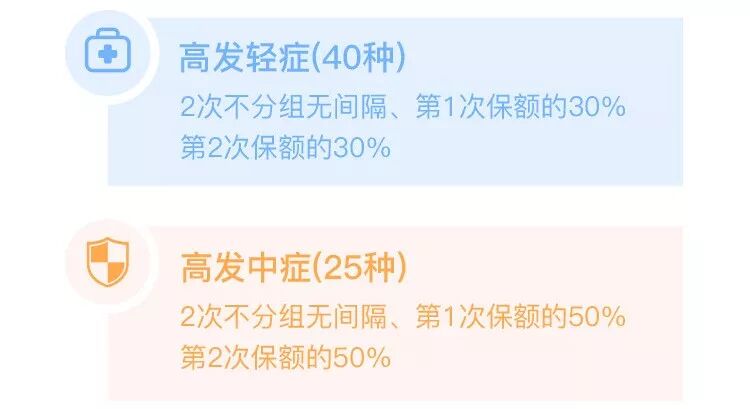 * 中症赔付:20种中症,基本保额50%,赔付次数×2,无间隔;