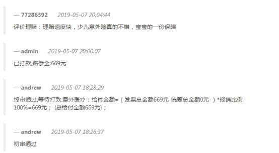 2019.05.07 理赔审核通过,曾女士获得赔偿金669元