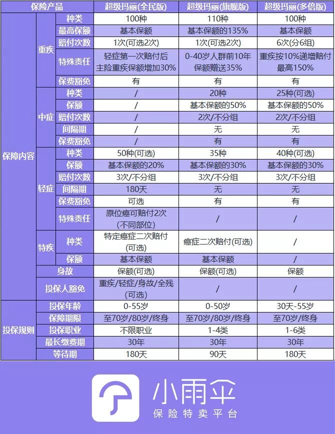 如果看重癌症保障,旗舰版可以附加全部癌症二次赔付,可以重点看看;全民版既有原位癌二次赔,又可附加16种特定癌症二次赔,也很合适。